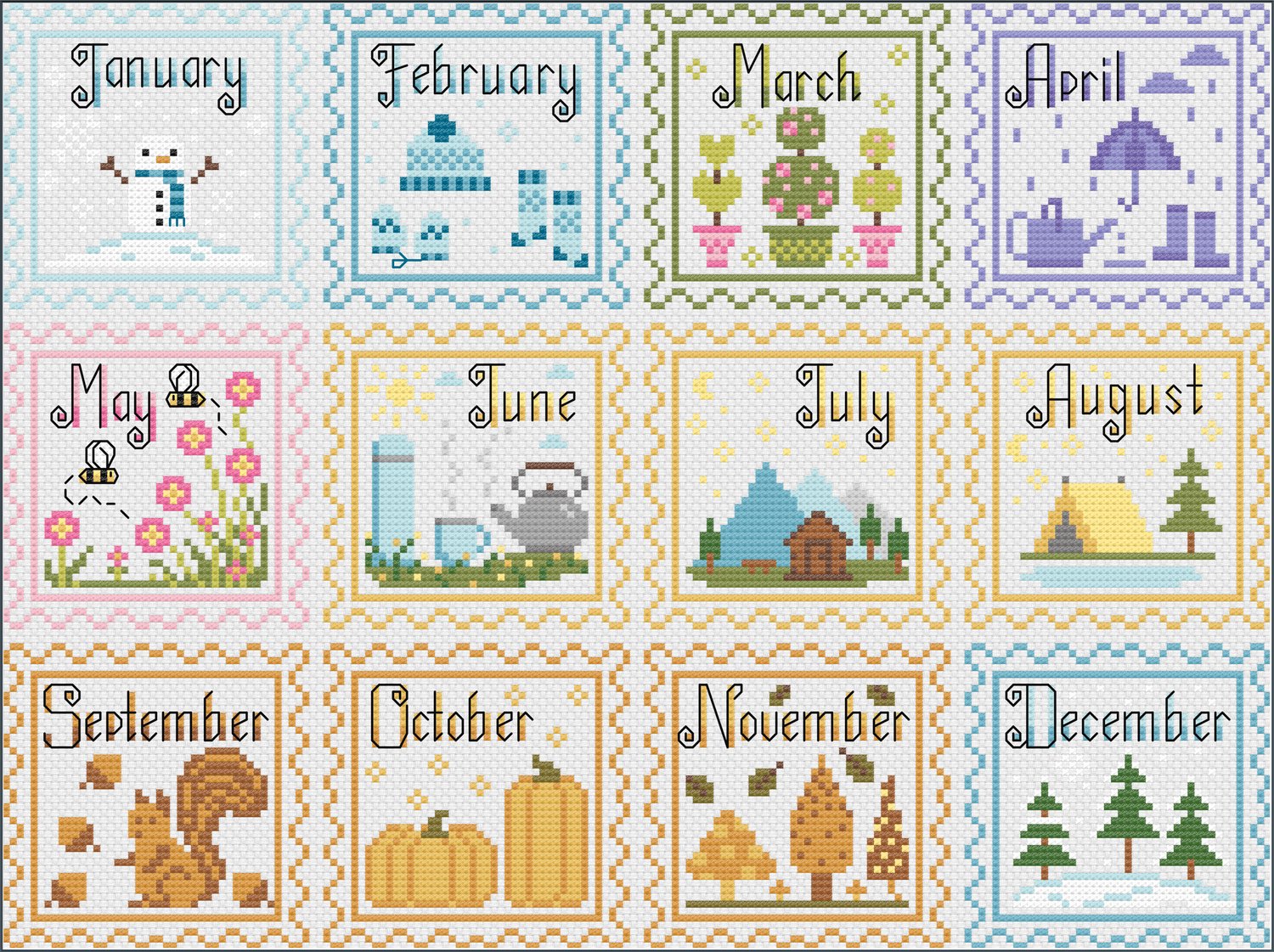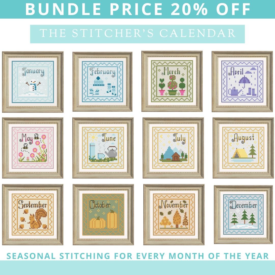 BUNDLE OF ALL 12 STITCHER'S CALENDAR CHARTS 20% OFF